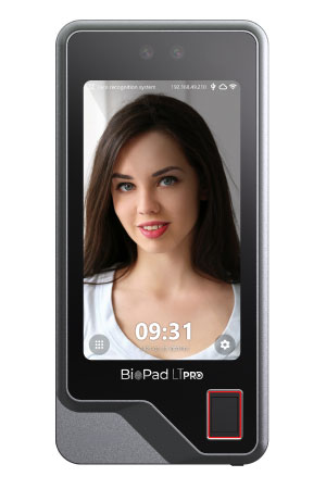 Terminal de reconocimiento facial, huella digital y lector de proximidad para control de asistencias y accesos.